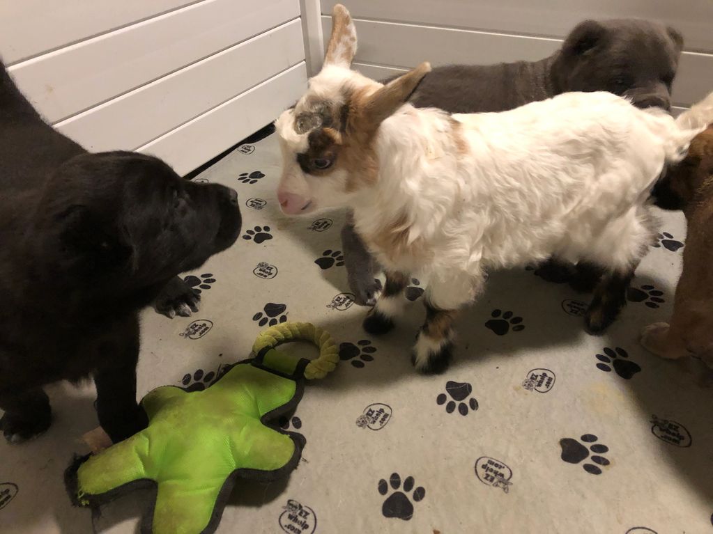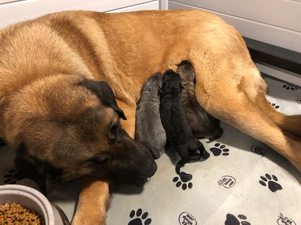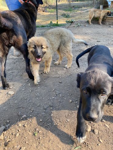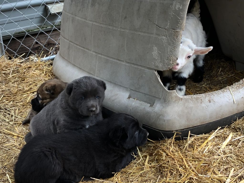 Mom is back to work keeping her animals safe, with her puppies watching her work and bonding with their own future charges.